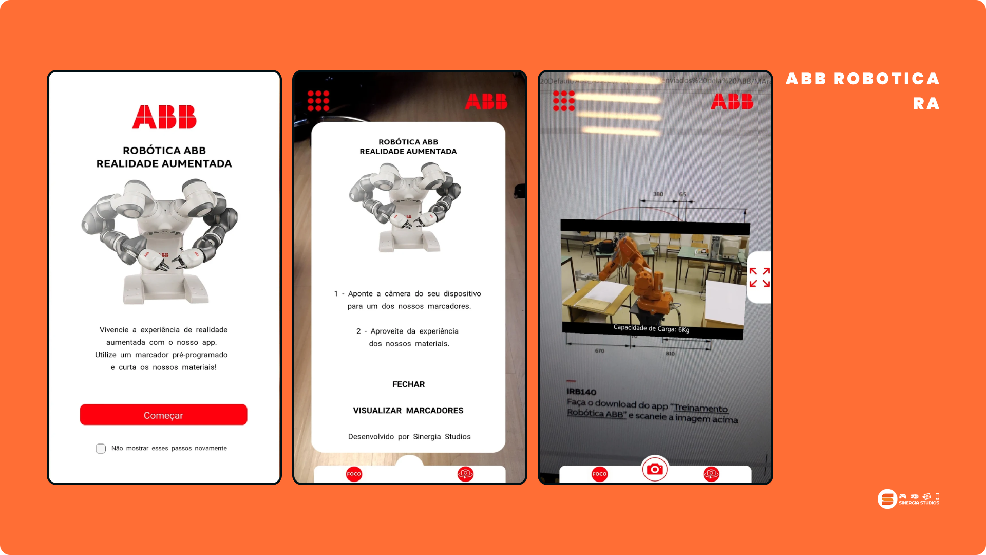 Com o objetivo de apresentar novos produtos, o aplicativo da ABB Robótica desenvolvida em parceira com a Sinergia, apresentou vídeos de novos equipamentos á época através de imagens do manual de cada um, além disso, também apresentou uma visita em 360º graus dentro do laboratório.