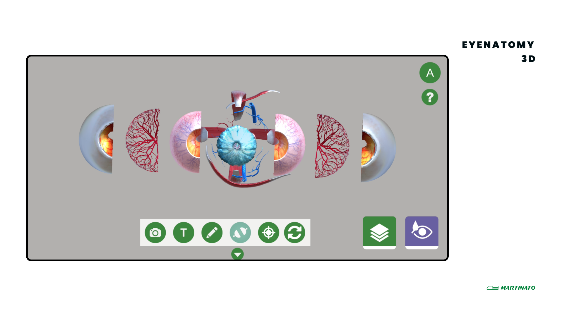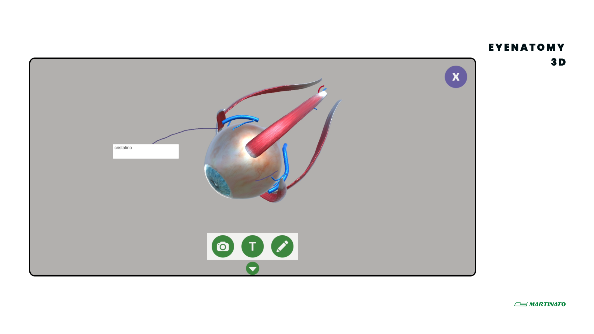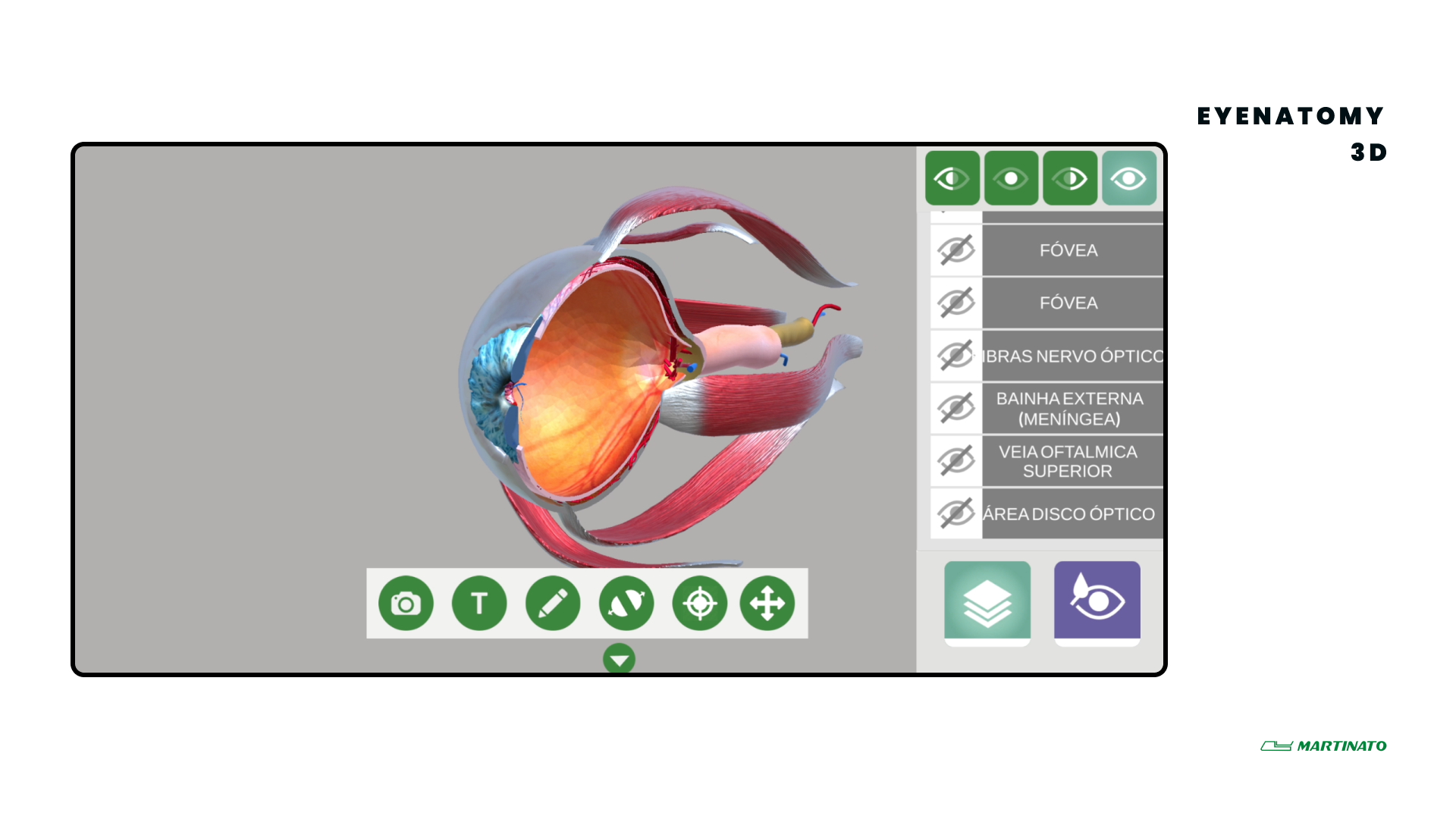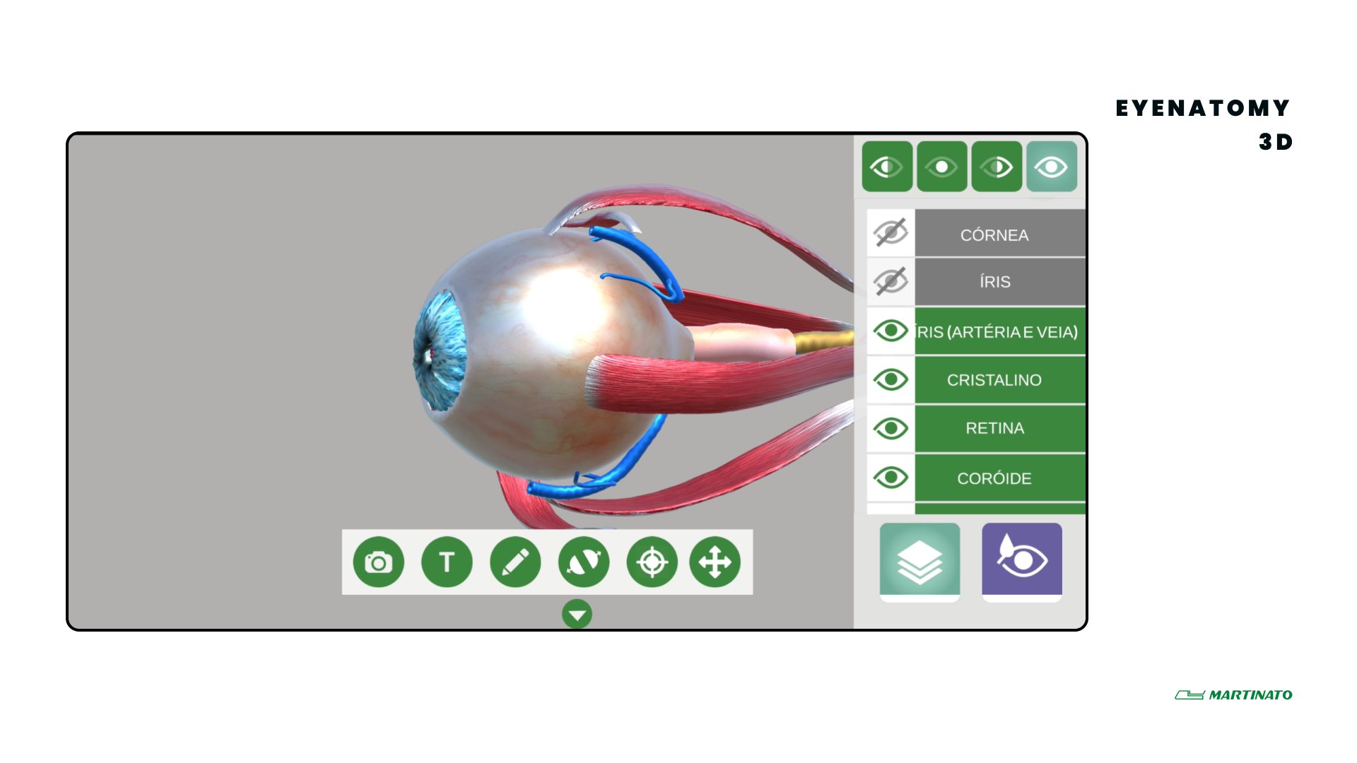 Aplicativo com a intenção de ser uma base de conhecimento básica, onde pessoas interessadas em oftalmologia poderiam visualizar a estruturar ocular e entender suas camadas através da interatividade que permitia utilizar da interatividade e tecnologia para controlar os usuários existentes. Parceira com a Sinergia Studios.
