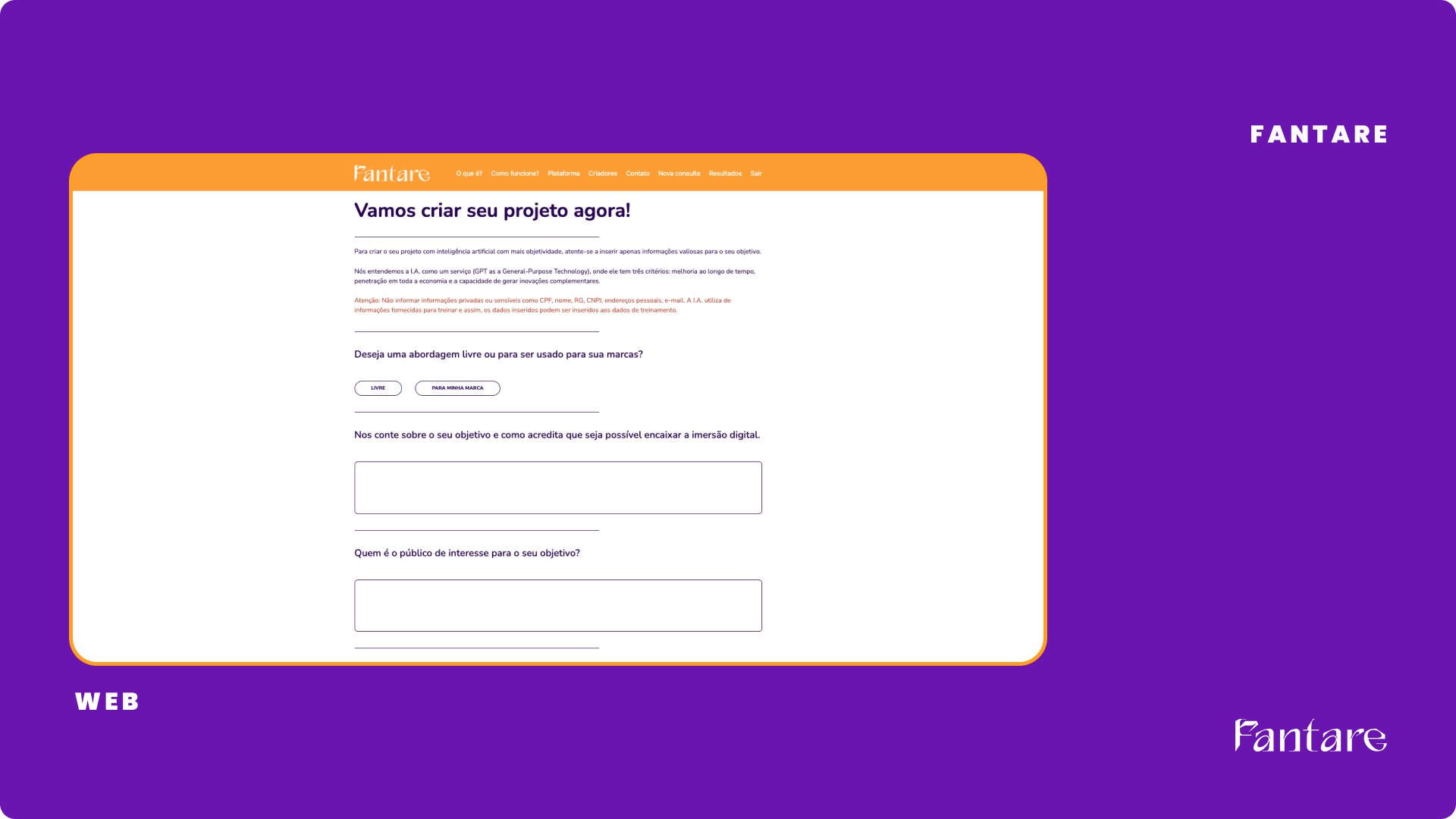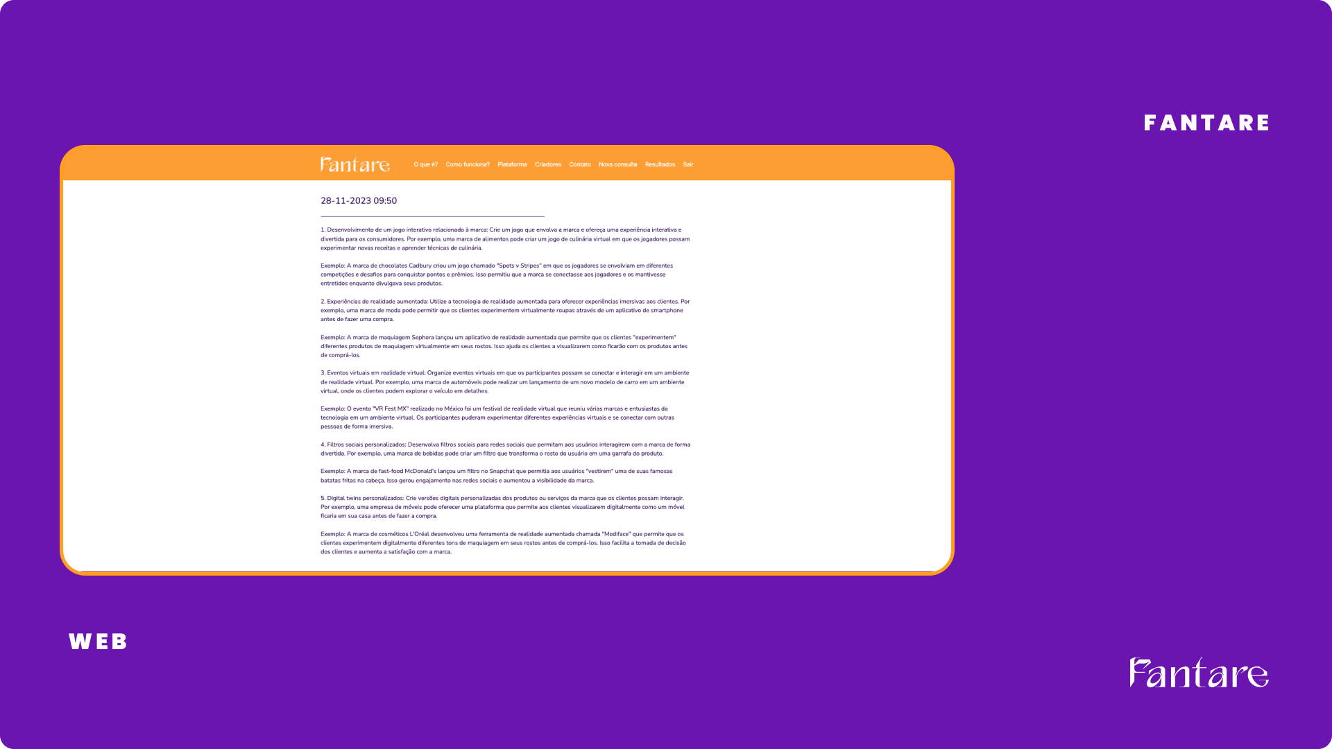 Criar projetos de imersão pode precisar de uma construção sólida de base de dados, com o surgimento da Inteligência Artificial, construímos uma integração com a principal rede de AI – ChatGPT – que trabalhava com o uso de APIs focadas em entender sobre a sua ideia e assim, trazer exemplos práticos que incentivassem criar experiências imersivas baseados nos seus objetivos.